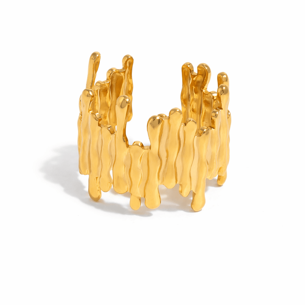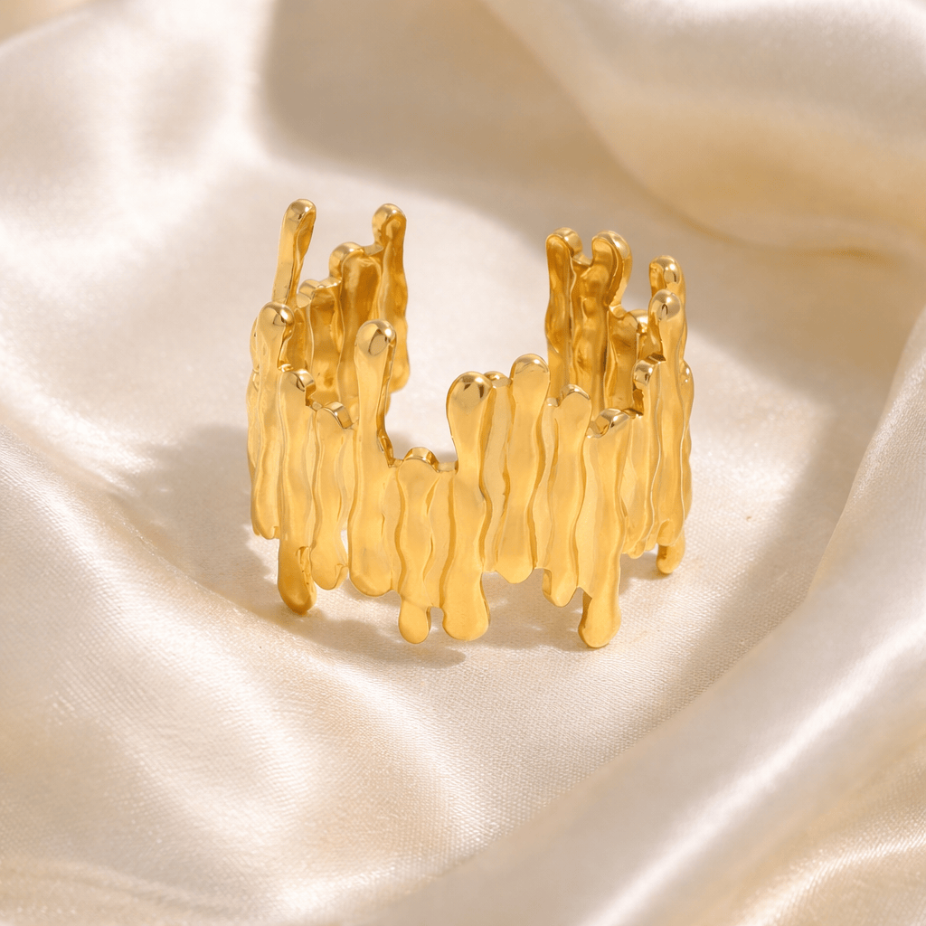 La belleza está en los detalles… y en lo imperfecto. Fissura es una sortija de textura irregular inspirada en formas orgánicas que evocan grietas, relieves y superficies naturales. Su diseño rompe con lo convencional, aportando carácter y profundidad a tu estilo. Ajustable y cómoda, se adapta fácilmente a diferentes tamaños, convirtiéndose en una pieza versátil para uso diario o para elevar un look más sofisticado. Resistente al agua y al desgaste, es una pieza diseñada para acompañarte sin complicaciones… pero con presencia. Porque lo perfecto no siempre es lo más interesante. ✨ DETALLES • Acero inoxidable• Acabado dorado• Ajustable (one size)• Resistente al agua• No se deslustra fácilmente• Diseño texturizado / efecto relieve ✨ NOTA DE DISEÑADORA Diseñada para adaptarse a diferentes tamaños gracias a su estructura ajustable. Puedes moldearla suavemente para lograr el fit ideal en tu dedo. Recomendamos guardar por separado cada accesorio, almacenarlos en lugares secos...