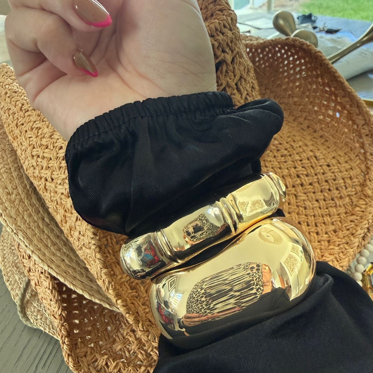 Pulsera Escultórica Dorada Descripción La Petra Stack es una pulsera de presencia fuerte y diseño escultórico. Su estructura segmentada, inspirada en las uniones naturales del bambú, crea una silueta elegante y moderna que captura la luz con cada movimiento. Su acabado pulido resalta cada sección de la pieza, aportando carácter y sofisticación. Diseñada para quienes aman los accesorios con carácter, esta pulsera chunky transforma cualquier look en una declaración de estilo. Su cierre estructural mantiene la línea limpia y minimalista que define esta pieza. Puedes llevarla sola como protagonista o combinarla con otras pulseras para crear un stack elegante y contemporáneo. Una pieza poderosa que refleja el espíritu atrevido y sofisticado de A la Braschi. Cuidados de tu joyería A la Braschi:Para preservar el brillo y acabado de cada pieza metálica, recomendamos almacenarlas por separado en lugares secos, limpiar suavemente con una franela sin productos, y evitar contacto con cremas,...