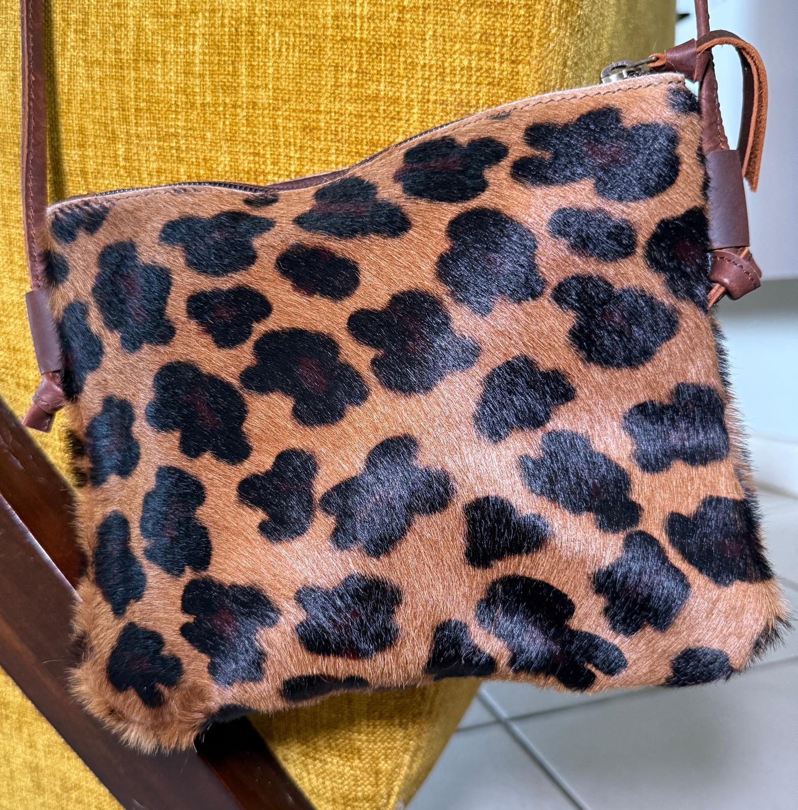 Una pieza que equilibra lo salvaje con lo elegante. De proporciones cuadradas y estilo atemporal, este crossbody es perfecto para quienes buscan un bolso exclusivo, de cuero genuino con pelo natural, estampado en leopardo clásico.